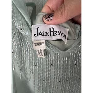 Vintage Jack Bryan 1970s Gray Green Chiffon Beaded Cloud Puff Dress Size 4 XS/S