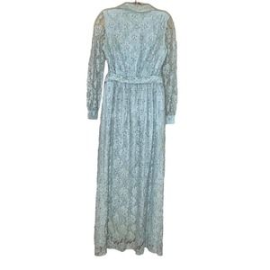 Vintage Jack Bryan Dress Small Hostess Gown Beaded Floral Lace Maxi Long Sleeve