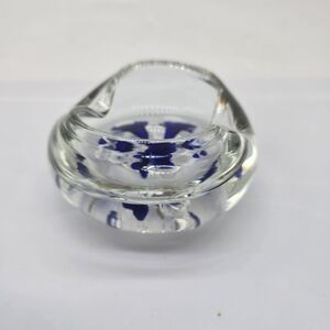 Vintage Jack Conner Paperweight 80s Glass Controlled Bubbles Blue Floral