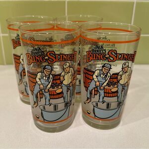 Vintage Jack Daniels Bung Slinger Bar Glasses 4 Piece Libbey Glass Set