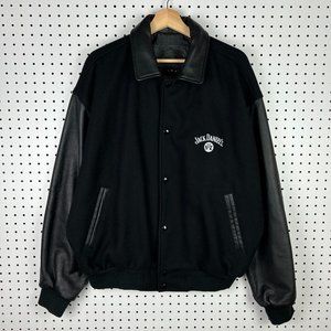 Vintage Jack Daniels Letterman Bomber Jacket Size XL 100% Leather Wool Promo