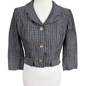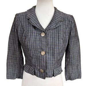 Vintage Jack Feit Jacket Womens Size Medium 1940s 1950s Plaid Cropped Blazer