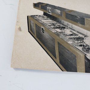 The edge has multiple small tears. The has creasing and discoloration. It does have a musty dusty smell. See pictures.
