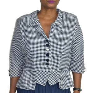 Vintage Jack Mann Peplum Jacket Blue Blazer Check Gingham Retro 50s Size Medium