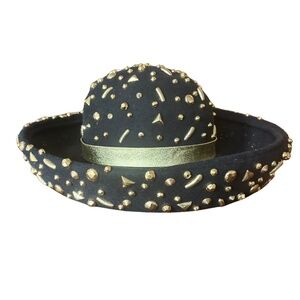 Vintage Jack McConnell Boutique Black Wool Hat with Gold Studs