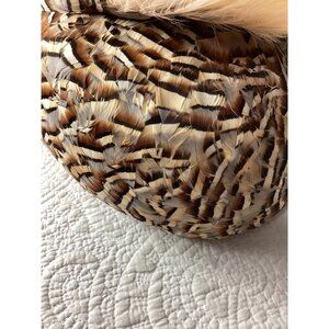 This Jack McConnell vintage hat epitomizes elegance with its layered feather design and subtle rhinestone accents. A classic accessory for refined style.