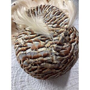 Vintage Jack McConnell Feather Hat W/Rhinestone Accents*Cream Feathers*Halloween