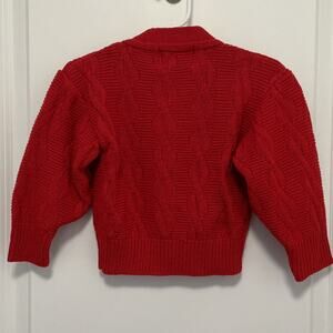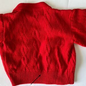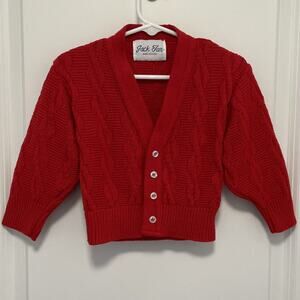 Very good used condition. Vintage Jack Tar made in USA, red V-neck, button up, wide sleeves, grandpa style sweater. No size on tags, CHECK MEASUREMENTS IN PICTURES PLEASE . I had to enter a size for listing (size 2 is just an estimate)One very small snag (zoom in picture with arrow)but no holes or stains. Smoke free home.