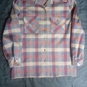 Vintage Jack Winter Plaid Polyester Snap Button Shirt - Size 12, Measures p2p=19" Length=28" Sleeve Length=23" - Excellent Condition, No Flaws