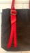 This vintage Jack Gomme tote pairs rugged black canvas with striking red leather details.