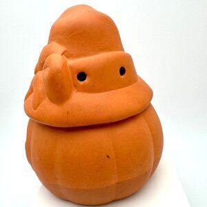 Vintage Jack-O-Lantern Red Clay Terra Cotta 5" Halloween Pumpkin Candle Holder