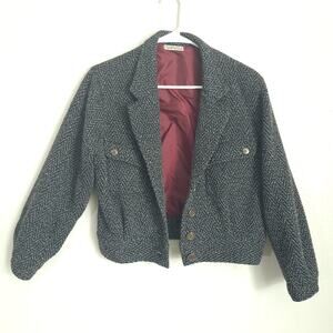 Vintage Jacket 80s New Look Womens Medium Cropped Tweed Black Gray Edgy …
