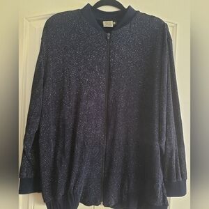 Vintage Gepetto Navy Sparkly Zipper Jacket. Large. Has pockets. Excelllent used condition. Measures 29" long, 24" pit to pit. Has a lot of stretch.