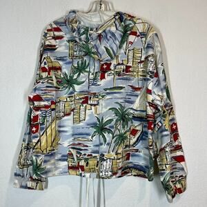 Vintage Carol Anderson Hoodie Jacket Sailboats island Sailing Zip White Blue in a Size Small