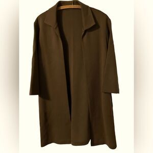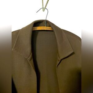 Vintage jacket. No tags. Possibly size large. Wool? Wool blend? 3/4 sleeves. Rich dark brown even though these pictures look faded. Fabric provides stretch.