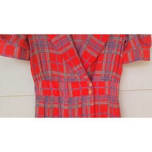 Vintage Jackie Bernard Eklektic Red Plaid Crepe Pleats Midi Dress Sailor Size 4