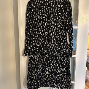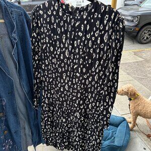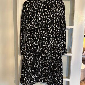Abstract, cheetah-like print. Beautiful vintage dress in great shape. Drop waist with a subtle bubble hem.