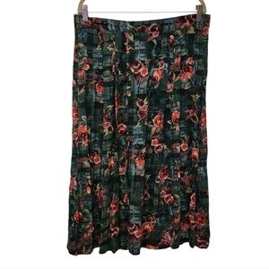 Vintage Jaclyn Smith plaid like turquoise green Red Pleated Midi Skirt