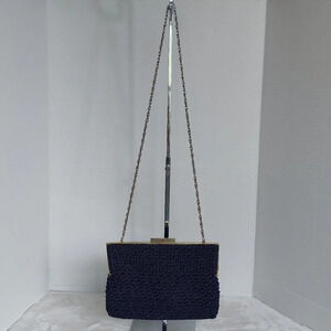 Vintage Jacobson's Navy Blue Macrame Bag Chain Shoulder Bag Kiss Lock Closure