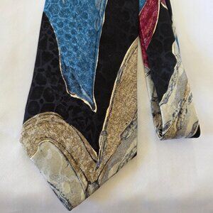 Vintage Jacobson's Silk Tie Blue, Red, Black & Tan Abstract Geometric Design