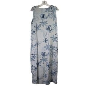 Vintage Jacque-E 100% Linen Maxi Dress Lagenlook Size Medium Blue Floral Resort