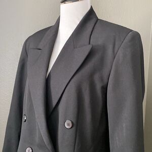 Vintage Jacqueline Ferrar Black Double Breasted Blazer Jacket Wool Blend