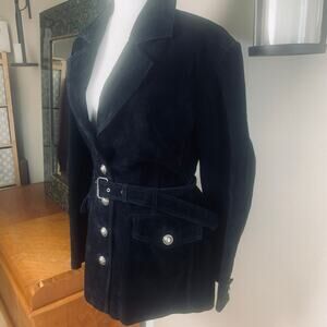 Vintage Jacquelyn Ferrar Size XL Black Suede Leather Belted Jacket Button Front