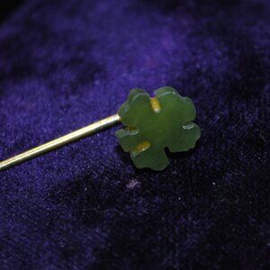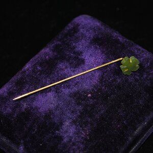 Vintage Jade / Green Stone Shamrock Stick / Tie / Scarf Pin