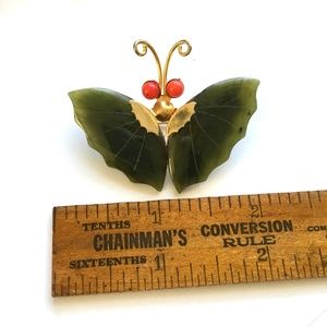 Vintage Jade Jewelry Butterfly Brooch Gold Plated metal set with Jade and Coral