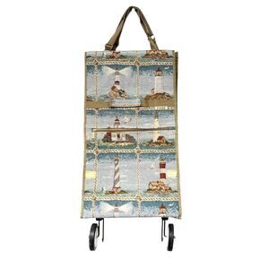 Vintage Jade Lighthouse Tapestry Foldable Rolling Travel Tote Bag