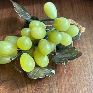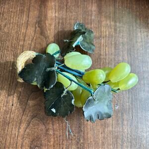 Vintage Jade Stone Grape Cluster with carved Leaves