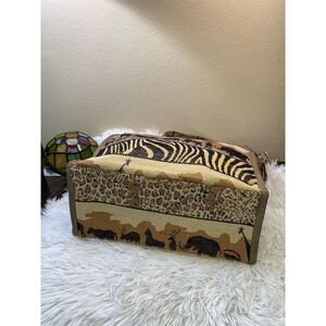 Vintage Jade African Safari Tapestry Tote Bag w/ Animal Prints