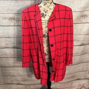 Vintage Jaeger Blazer Red Plaid Size 14 Linen Blend Great Britain Window Pane
