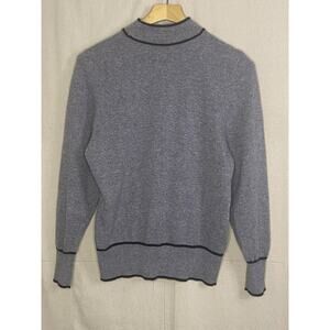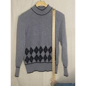 Vintage Jaeger Gray Lambs Wool Mock Neck Sweater Women Medium Argyle Dk Academia