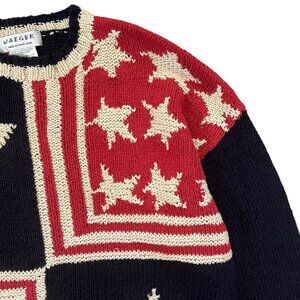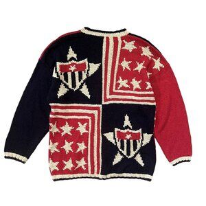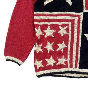 Vintage Jaeger Hand Knit Silk Blend Oversized Stars Stripes Flag Sweater Medium