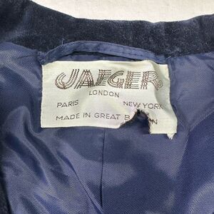 Elevate your wardrobe with this stunning vintage Jaeger velvet blazer in rich navy blue. Made in Great Britain, this piece exudes timeless elegance with its structured tailoring and luxurious textureperfect for refined evenings or classic everyday looks.