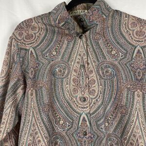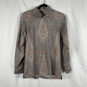 Paisley 100% Wool Vintage Jaeger 2-Piece Set With Long Sleeve Button Down, & Midi Pleated Skirt.