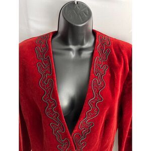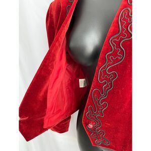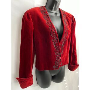 Vintage Jaeger Velvet Cropped Red Blazer Jacket Embroidered Retro Size 10 Witchy