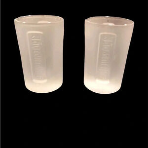 Vintage Jagermeister 2CL Embossed Frosted Jager Logo Deer Shot Glass X 2 EUC