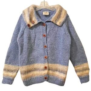 Vintage Jagman Merino Wool Blue Knit Cardigan Sweater With Contrasting Trim M