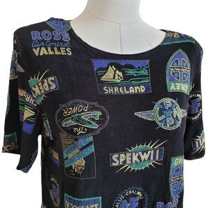 This chic Vintage Jaipur log Top with Zephyr planes, Spekii, Ross Air control Valleys, Shreland, La Roca, logo Black Metallic