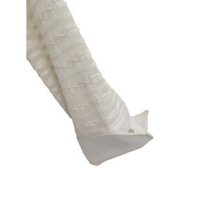 Vintage Jaipur White Sheer Striped Long Sleeve V-Neck Stretchy Button Up Blouse