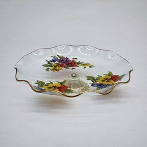 Vintage James Clarke & Sons Glass Stoke On Trent England Pedestal Serving Plate