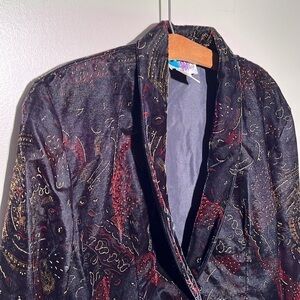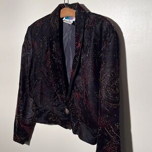 Vintage James Cropped Velour Blazer. Metallic gold detail. Excellent vintage condition, no damages or wear. Size small.