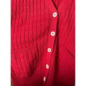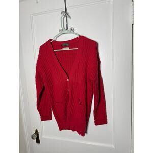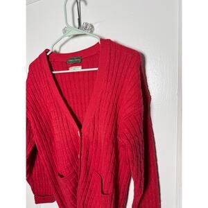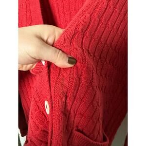 Vintage James Davis Red Grandpa Cable Knit Fisherman Cardigan Sweater Medium