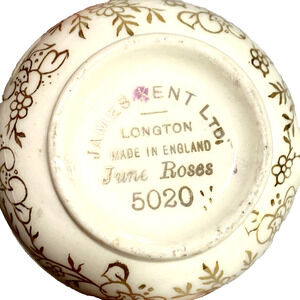 Vintage James Kent Ltd Longton Trellis / June Roses Chintz pattern English porcelain - this set includes a Creamer, open sugar bowl and 2-slot toast rack for one person. Super cute set in creamy white with pink roses, colorful flowers, greenery and goldtone trellis highlights overall. All pieces are clearly hallmarked - all in excellent vintage condition - romantic, cottage core, country manor house style home decor at its best!