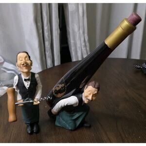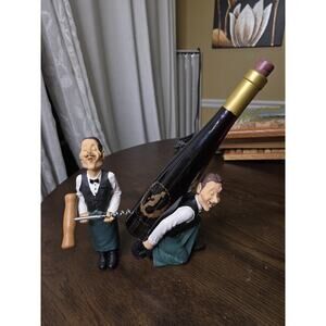 Vintage James the Butler Wine Bottle and Corkscrew Holders - bottle included