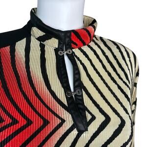 Vintage Jamie Sadock Firework Beige/Red/Black Striped Long Sleeve Golf Top sz M
