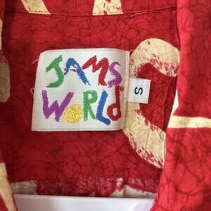 Vintage Jams World Button Up Shirt Womens Size Small Red Floral 80s 90s