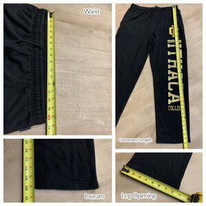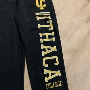 Vintage JanSport Ithaca College Bombers Sweatpants Men's Large L Black Open Hem Pants Collegiate NCAA Yellow Spell Out Leg Print Heavyweight